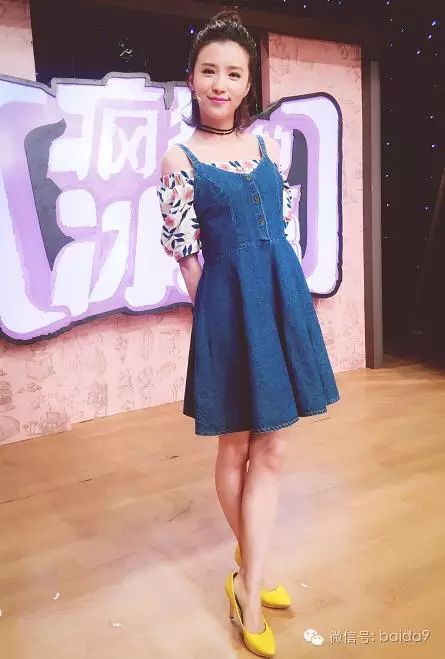 都说牛仔是减龄圣品,还真的没错,看看张杨果而身着的碎花一字肩上衣搭配牛仔吊带短裙,显得更加时尚年轻,脚踩的黄色高跟鞋更是抢眼。