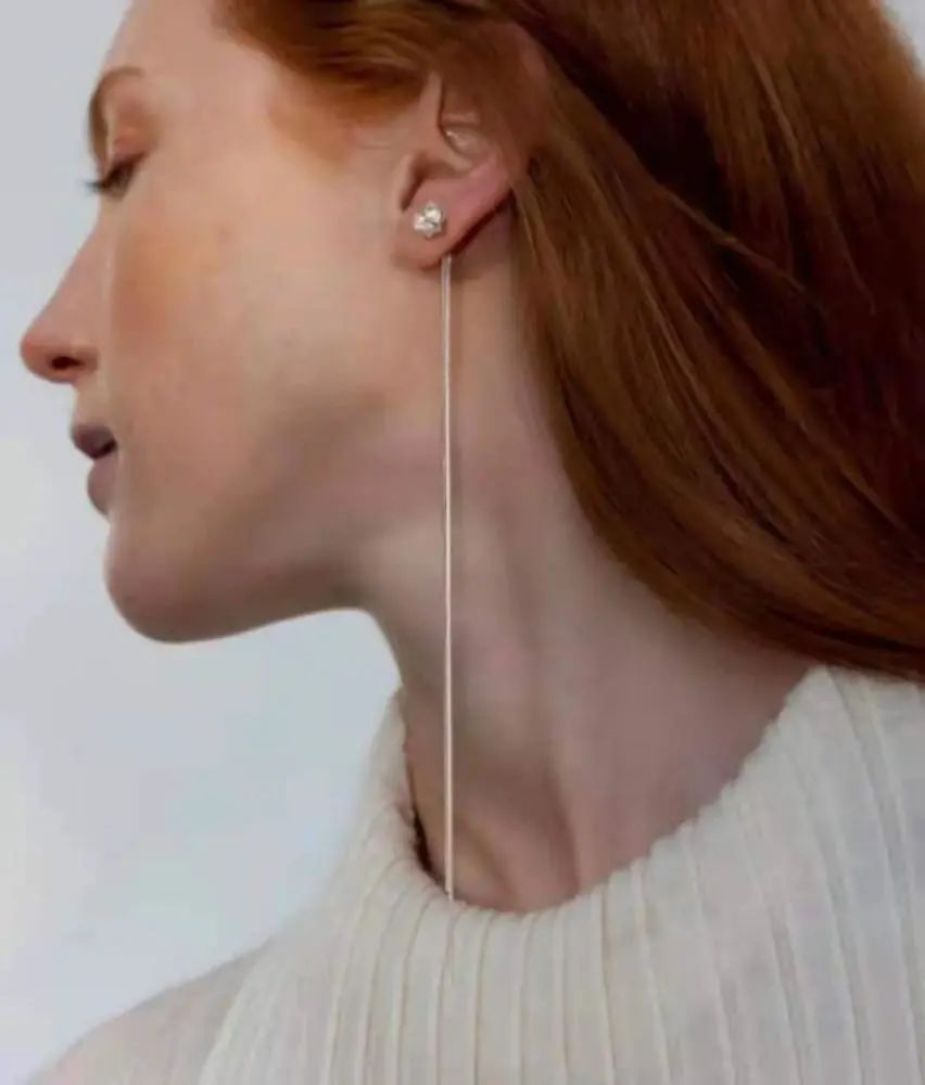 对于“短脖子”星人来说,线性耳饰能更好地修饰脖子和脸型,垂直线条在视觉上能起到纵向拉伸的效果。