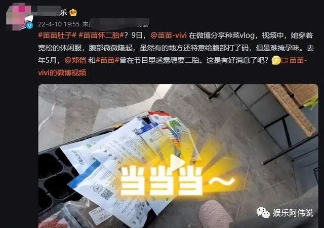 而4月10日苗苗发布的视频里除开展露出豪宅内景,更引人注意的是其腹部已经隆起。