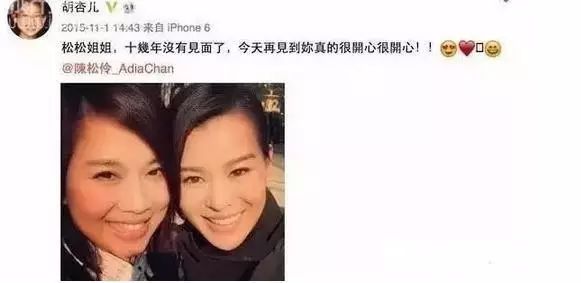 还记得去年胡杏儿发了一条微博,是跟陈松伶的合影,熟悉陈松伶的人都喊她松松。