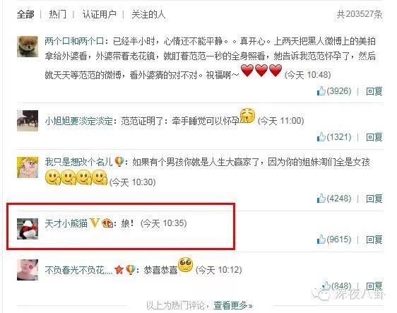 网友对她怀孕这事儿多是持祝福态度的,而在浩荡的20w评论大军里,天才小熊猫无疑拔得头筹,爽快又无比嘚瑟地喊了声,娘! 也是拼了