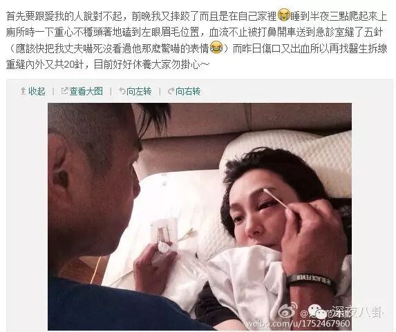 今年六月份的时候范玮琪说自己摔了一大跤,还晒了照片(不知道的以为家暴呢T T)↓,摔到要缝针啊!!!!!黑人给他上药,小主当时觉得倒是多少有点儿相濡以沫的意思