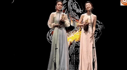 上台之后,二人就只顾着傻乐,一开始觉得是紧张,后来觉得应该是根本没想到自己得奖,所以可能连获奖感言都没来得及准备。