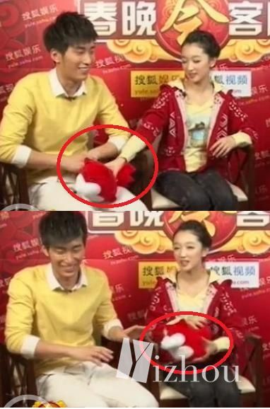 某年春晚结束后在后台二人接受媒体访问,中间周冬雨突然喊了句:你的口水喷到我了。