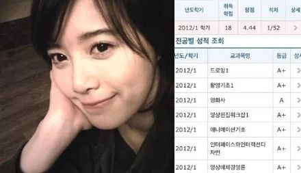 顺便说一声,具惠善是个很聪明的女性。在世界百强名校成均馆大学里就读,成绩单非常漂亮。满分4.5的绩点,她4.44,并且全A。