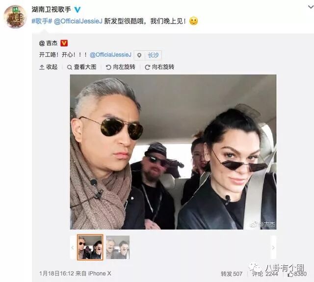 对此今天歌手吉杰在微博上直接晒出与结石姐的合照,配文称:开工咯!开心!!!直接辟谣退赛传闻,他还在评论中称:坐在后面的经纪人问我中国歌迷想听谁最后来给她帮帮唱。你们说呢?照片中吉杰和结石姐带着黑色墨镜,做出同样的表情,酷炫十足。而随后《我是歌手》的官方微博直接转发了该微博,称:新发型很酷哦,我们晚上见!