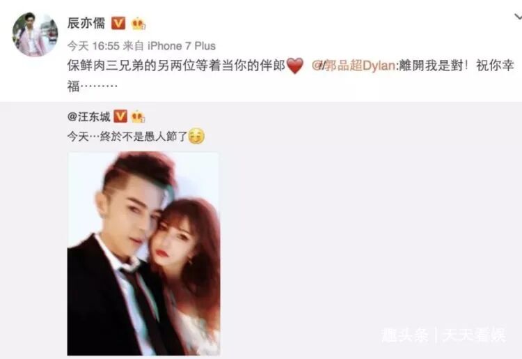 而辰亦儒作为汪东城的好友也纷纷送上祝福。