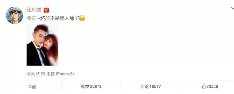 起初是2018年1月19日,汪东城社交平台分享了一张和一名美女的合照,并配文今天终于不是愚人节。