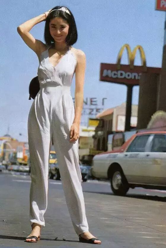 林青霞20多岁时就穿过这条深V连体裤,深V的!深V的!现在穿这么时髦的连体裤或许都只有欧美部分超模和女星了,更别说人家一平常的街拍就这么穿着出门了。