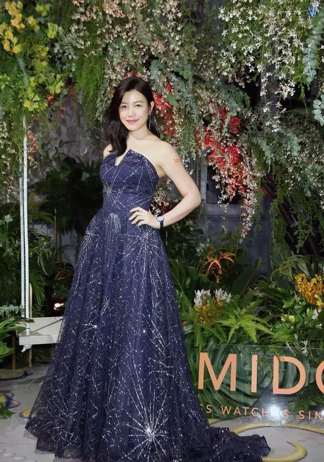 收腰的版型显得整个人更加的娇小玲珑,收缩腰上的最肉,拉高腰线,从而给人一种胸以下都是腿的感觉。这款礼裙的颜色比较深沉,并不是那么好驾驭,随意那些年轻的小萝莉,我就不建议穿这款礼裙了。年纪在奔三奔四的女性比较适合穿,上身的效果既有档次,又提升气质。整个裙身还点缀这许多小水晶,组合成不一样的图案。在深蓝色裙子的衬托下,显得格外耀眼迷人,为陈妍希增添了许多不一样的光芒。