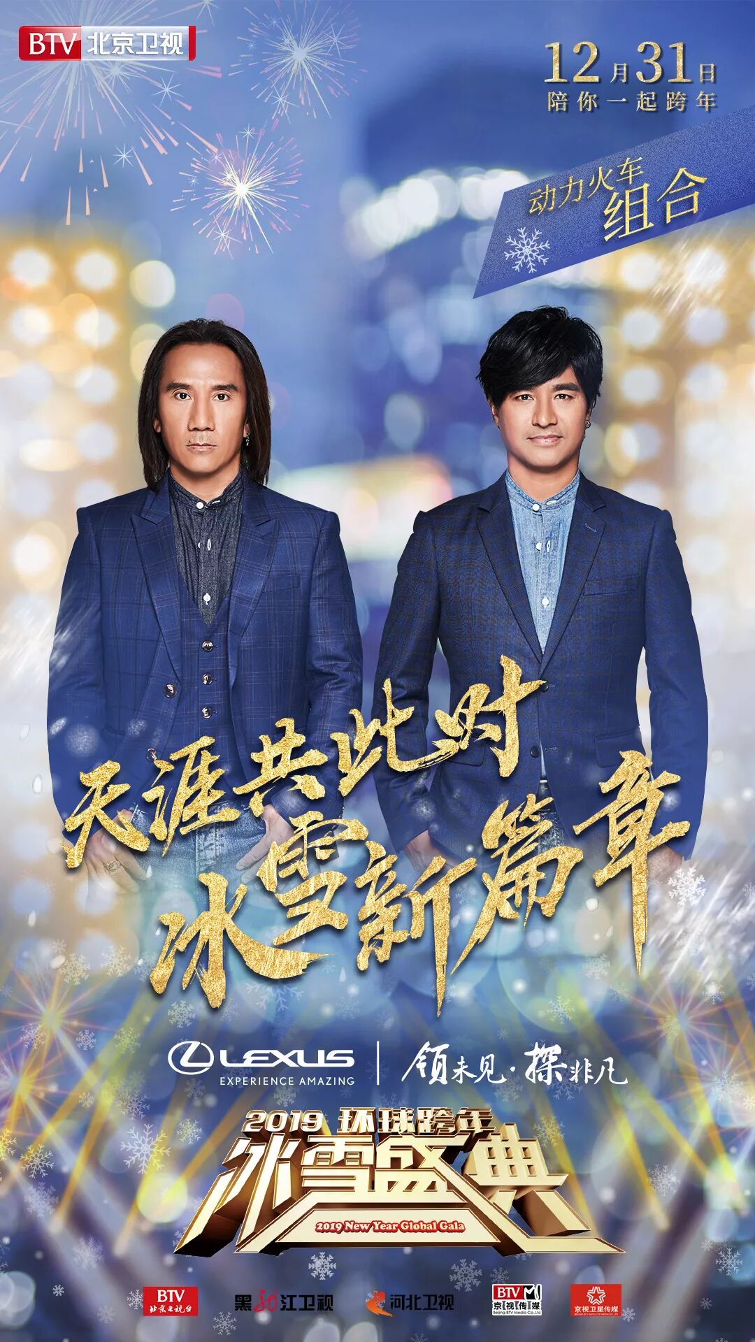 目前,汪峰、崔健、郑钧、张震岳、动力火车、黑豹乐队、南征北战NZBZ等艺人已确认加盟。摇滚元素将与冰雪主题的跨年碰撞出什么样的精彩火花?明星结合户外实景的拍摄模式,又会带来怎样不一样的视觉体验?由LEXUS雷克萨斯冠名的BTV 2019跨年冰雪盛典将于12月31日19:30在北京卫视、黑龙江卫视、河北卫视同步播出,敬请期待!