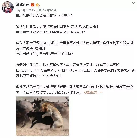 此前韩颖华就发微博说了:来吧不怕~▼