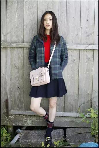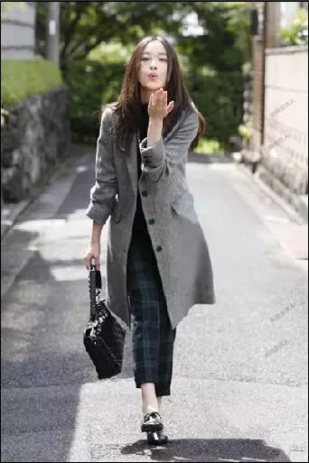 犀利哥引领了混到潮流,却不是谁都敢随意尝试,复古格子短外套搭上黑色高腰小短裙,倪妮就像是回到了学生时代。