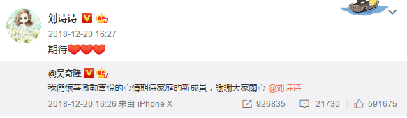 听到婆婆先公开怀孕的消息,吴奇隆和刘诗诗也瞒不住了,这才在微博上宣布,期待家庭新成员。