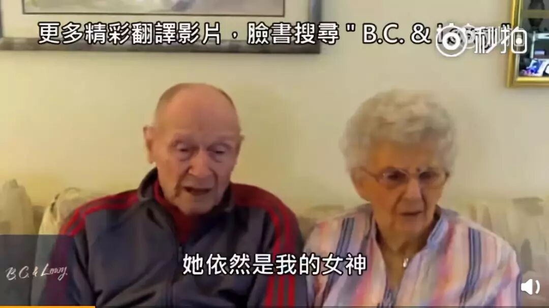 在视频里,老爷爷在夸一旁的老伴儿永远是自己的女神。
