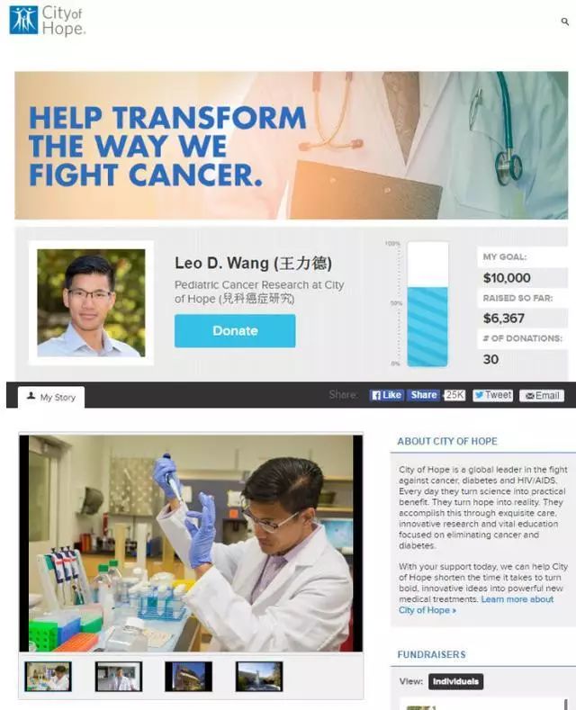 上面讲了,希望之城是非盈利性的研究和治疗中心,人们可以通过官网上捐助的通道进行捐赠。王力德还一一回复感谢那些捐赠者。(真是个good boy 啊)