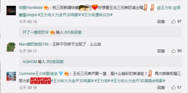 粉丝们也表示对王氏三兄弟的演出充满期待 ↓