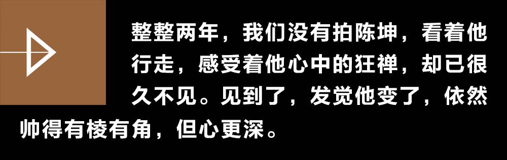 这确实是一张非常年轻的脸。些微风霜为它增加的是沉默时的严肃,而不是年龄感。坐在陈坤对面时,要提起戒备,才能不被这张脸俘虏。