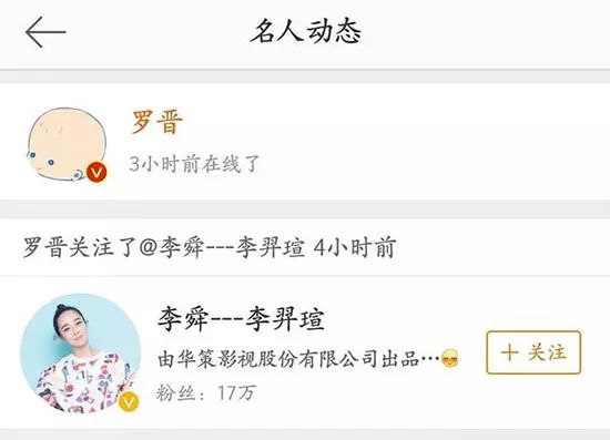 没想到一波未平一波又起,罗晋在某一天被发现关注了疑似是前女友李舜的微博。