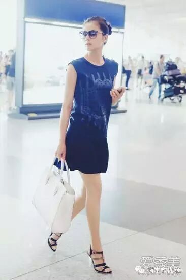 机场街拍,T恤+短裙+高跟鞋,把休闲look穿出女人味。