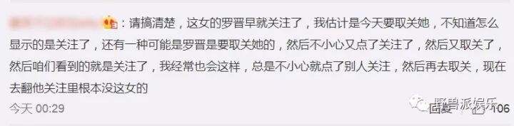 罗晋关注了李舜没两个小时,女方就发了一条微博,内容如下: