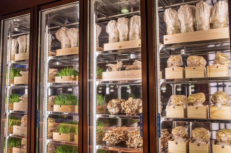 豆苗菜、各类珍菌柜中尽情呼吸生长