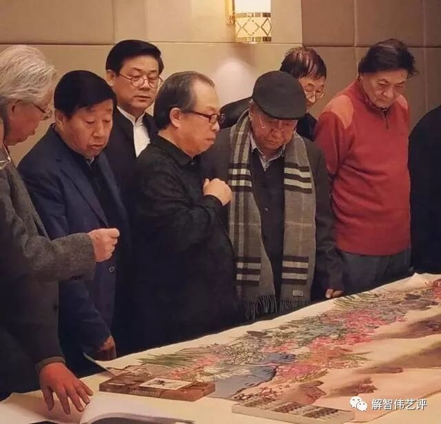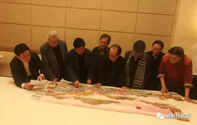 “建”画和十二位名家独立创作的正常水平相距太远,甚至连题跋的书写也虚弱乏力,线条浮于表面,一个民族的刚性也被弱化,又成一曲中国书画的艺术悲歌。(此文章来自解智伟艺评)