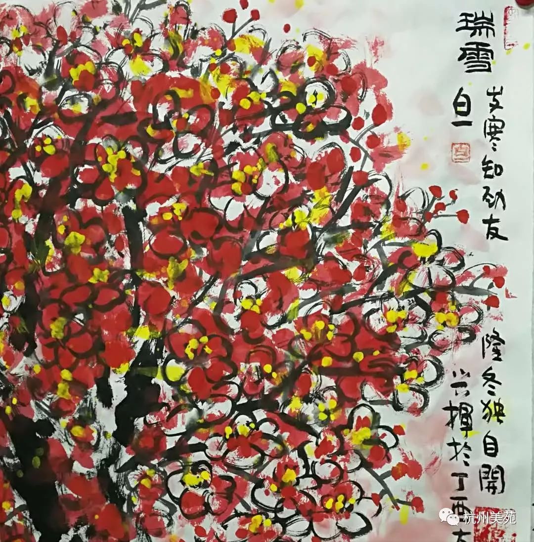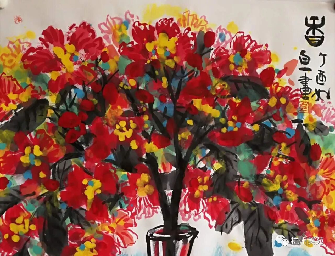 而我们这十二位名家却是六气沆瀣,一气呵成,笔下花卉,相互斗艳,脂粉味浓,俗不可耐。刘大为的向日葵,背向太阳,张立辰的荷花,兀立石旁,吴悦石的太阳,毫无画意。“建”画的树与花枝大小相近,悖于常识。