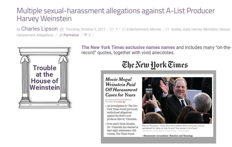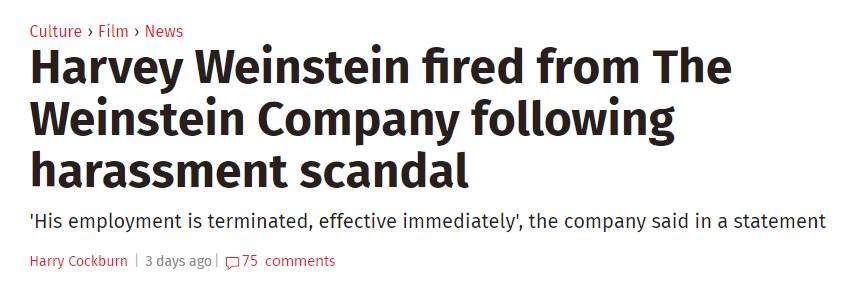 之后,《纽约时报》更是二连击,曝出更多信息,包含明星采访、细节的披露。哈维·韦恩斯坦被炒鱿鱼,才出来道歉。