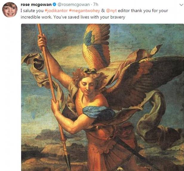 之后,更是称赞《纽约时报》记者的“英勇”表现,意思就是夸赞该记者敢于揭露事实,避免了之后很多女明星的“重蹈覆辙。”