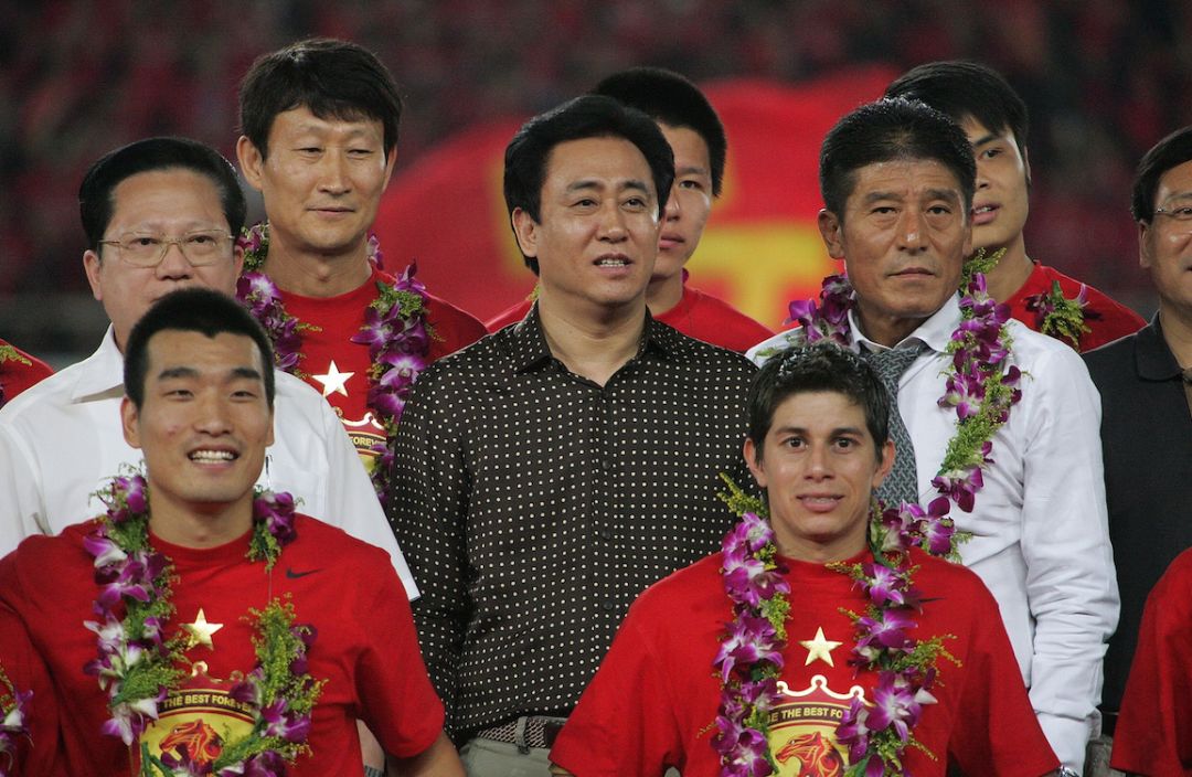 许家印的确也有这个资格——这年,恒大再一次拿到亚冠。在看台包厢内,球队另一大股东马云与他击掌相庆。