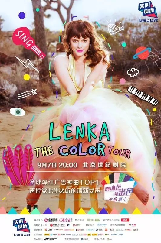 即日起至2017年9月4日,成功申请中信银行信用卡的新客户,即有机会获得9月7日Live 4 LIVE尖叫现场2017 Lenka The Color Tour巡回演唱会北京场门票2张!共赠门票50张!