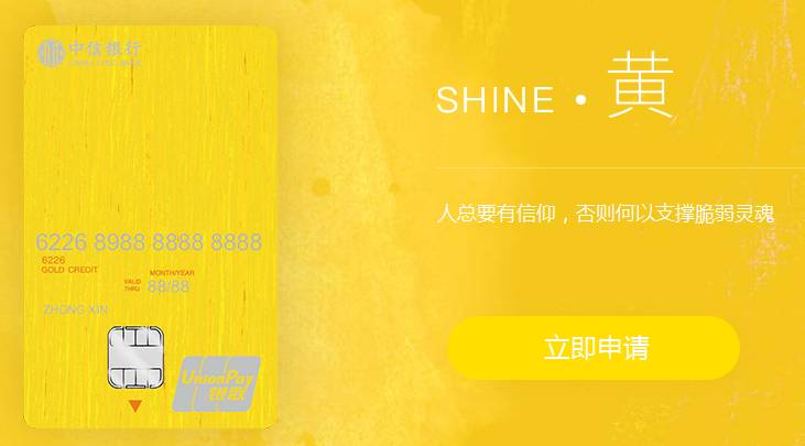 中信银行信用卡最近推出了一系列高颜值的信用卡,分为 “红、黑、蓝、紫、粉、绿、黄”七种颜色。
