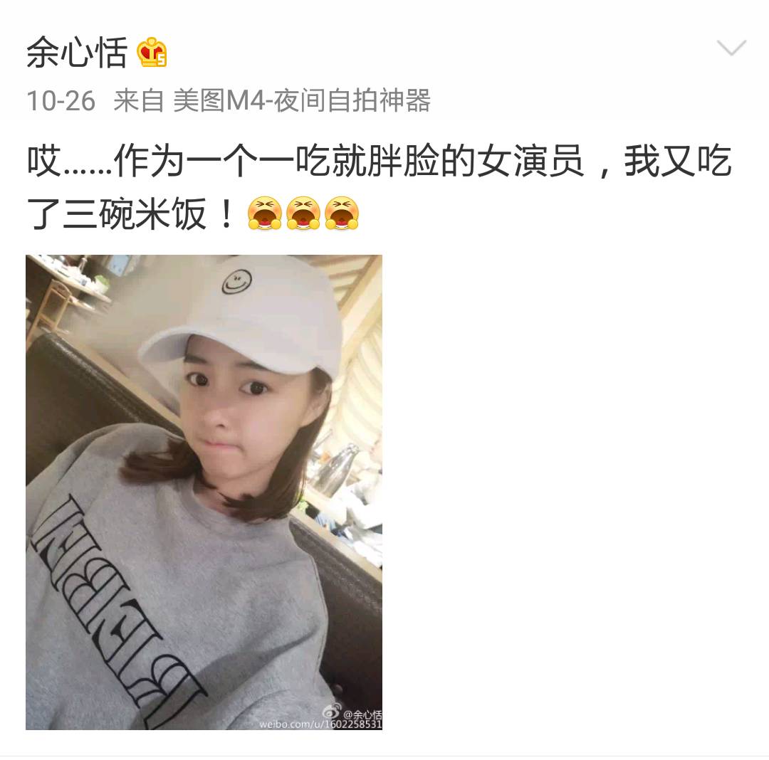 然而,除了感谢每天的成长和机遇,在她的博客和微博能发现,余心恬还在感谢另一样东西,那就每天能元气满满地吃,吃,吃。