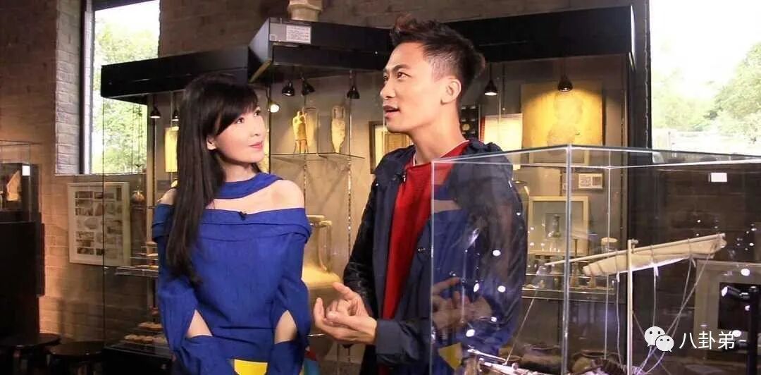 采用撞色穿搭,主要利用繁简结合的方式,如果能在裁剪方面的话就心思取得的效果将会更加出色。周慧敏上身是蓝色的一字肩上衣,露出半边肩膀,特别性感,下身则是一条带有印花图案的半身裙,采用这种撞色特别养眼。