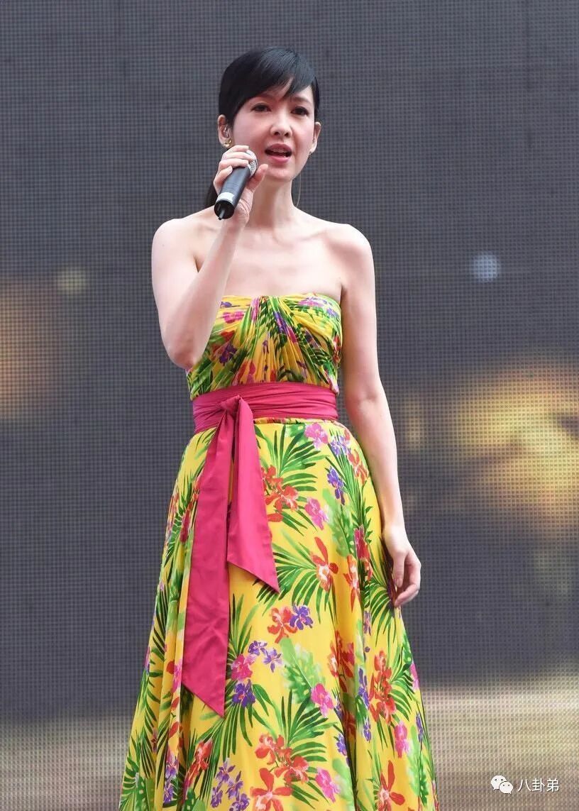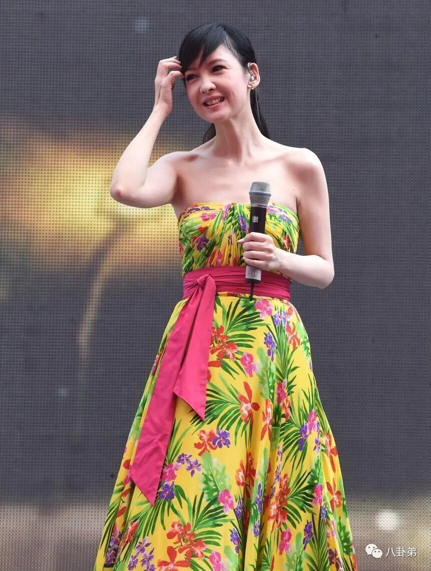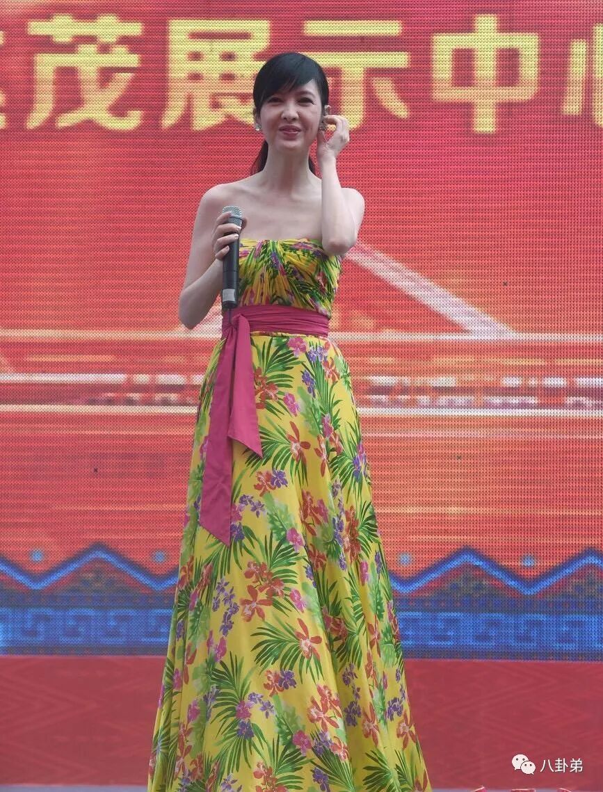穿上了抹胸连衣裙,它的颜色偏黄,看起来愈发让人显得特别明丽了。在上面铺设了很多花朵图案用于装饰,像油画徐徐铺开,增添了许多亮点,在使用抹胸连衣裙的时候会把部分肌肤露出来,还是比较考验身材的,上半身不能堆积太多赘肉,否则会有些显胖。周慧敏这条连衣裙的长度偏长,用于显示出端庄气息,它的作用很突出。下摆宽松一些,还能达到遮肉的目的,真的特别好看,足以显示出她身上浓浓的女人味。