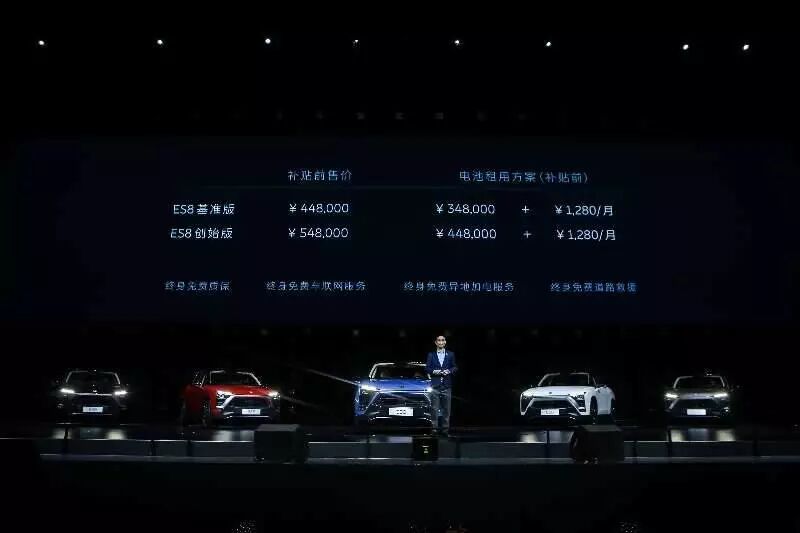 蔚来也在现场承诺,车辆销售后,终身免费质保,终身免费异地加电服务,终身免费道路救援,终身免费车联网。