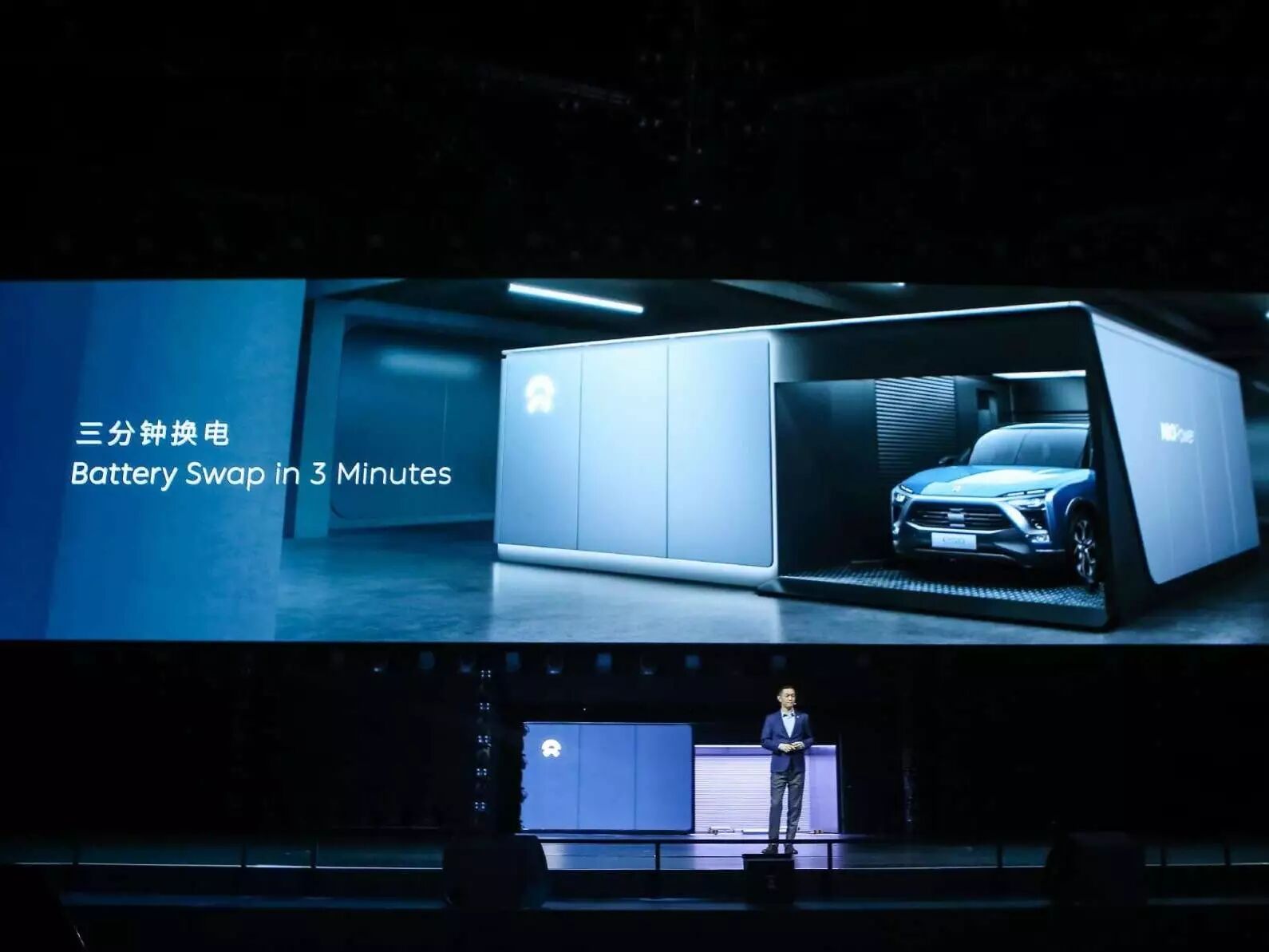 当李斌说要邀请一位老朋友上台的时候,一辆无人驾驶的ES8自动行驶到舞台中央,让我觉得颇为惊艳。