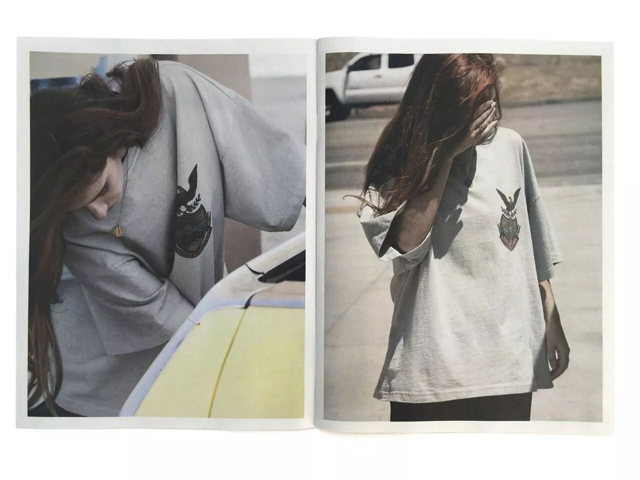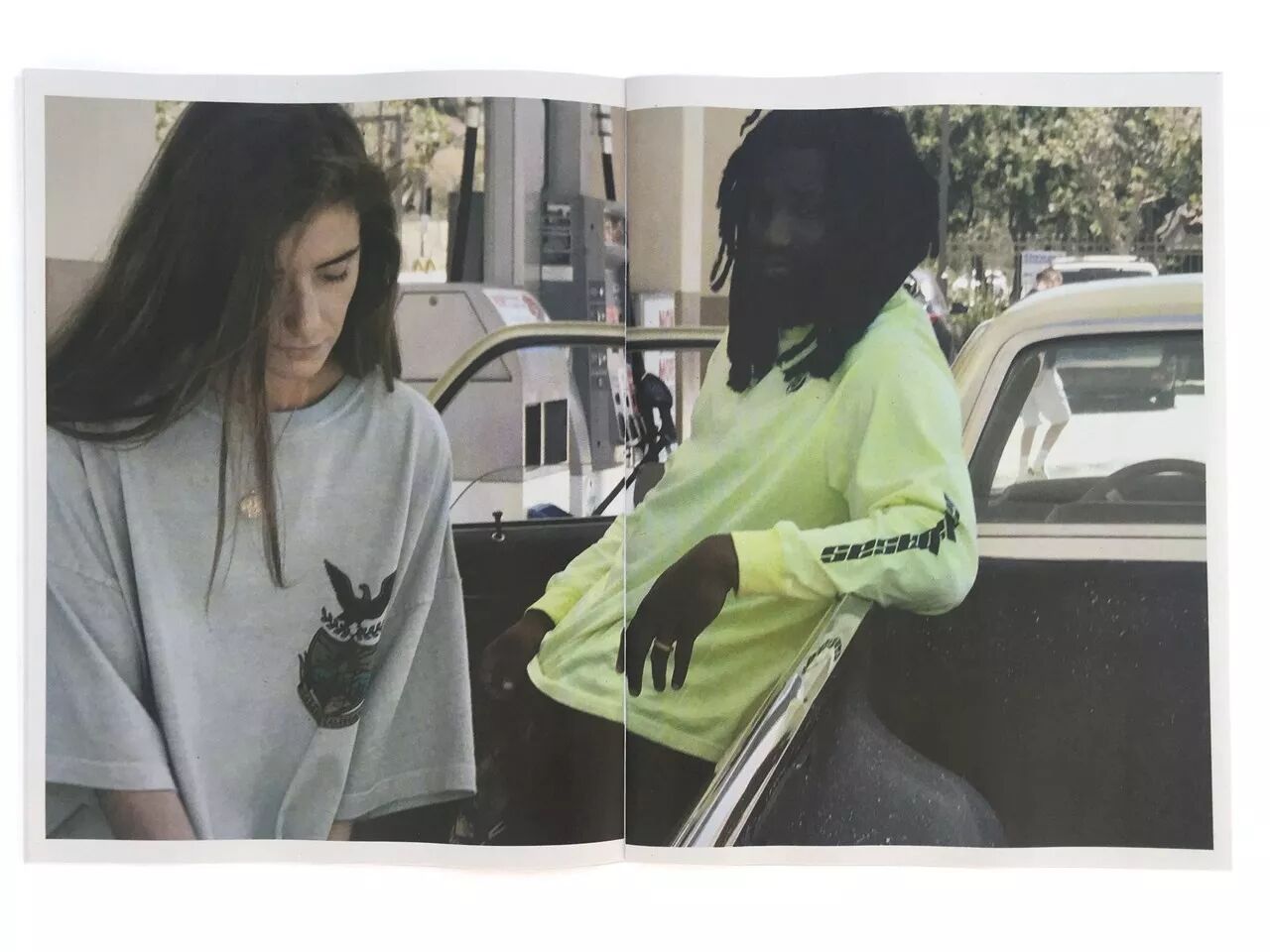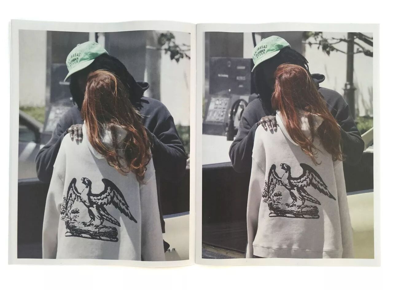 This latest mag – the first the photographer has created for the offshoot Calabasas collection – also stars some familiar faces: Tremaine Emory (creative consultant and one half of No Vacancy Inn) and Melissa Collett (creative director of upcoming luxury label WORME). Nickerson, famed for her portraiture, captures the natural intimacy of the IRL couple as they pump gas, walk the streets, and candidly cuddle on the sidewalk.