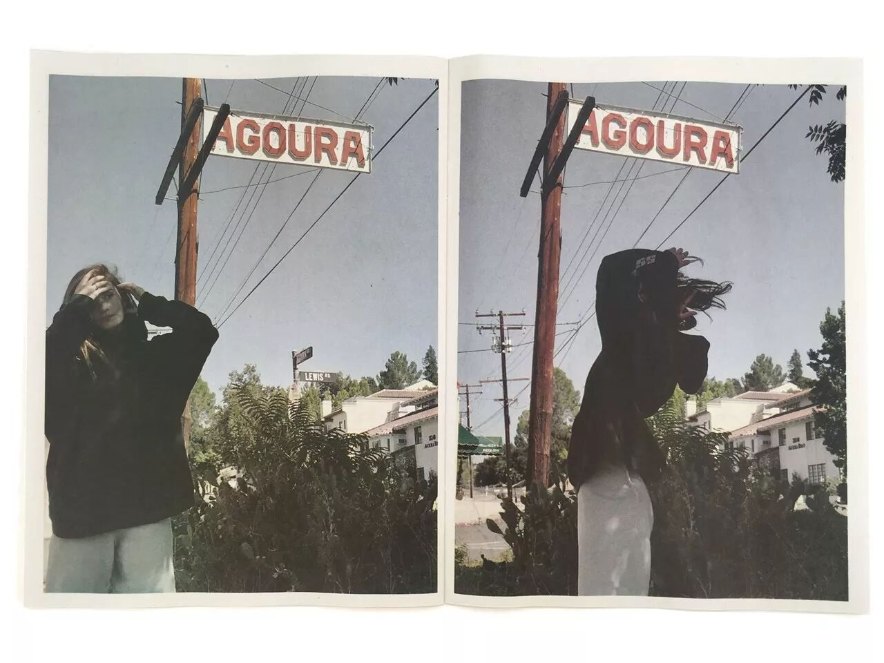 A shiny yellow Chevrolet; phone lines reaching into a blue sky above a dusty yellow hillside; signs advising on the price of the fuel that keeps the traffic surging around the sprawling arteries of Los Angeles. Shot in Calabasas, Jackie Nickerson’s latest photography zine for Kanye West’s Yeezy feels like a postmodern ode to the myths and symbols of California.