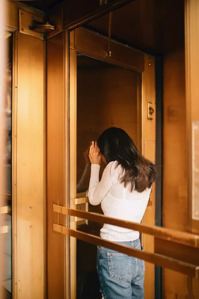 张嘉倪配文说:“和我在扭腰的街头走一走”,日常还是非常调皮,背对着镜头似乎在照镜子,背影迷人,真实展现“小腰精”。