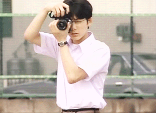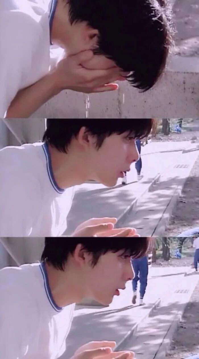 还有这张体育课上洗脸的照片,侧脸线条真的好看,穿着校服非常干净青涩。