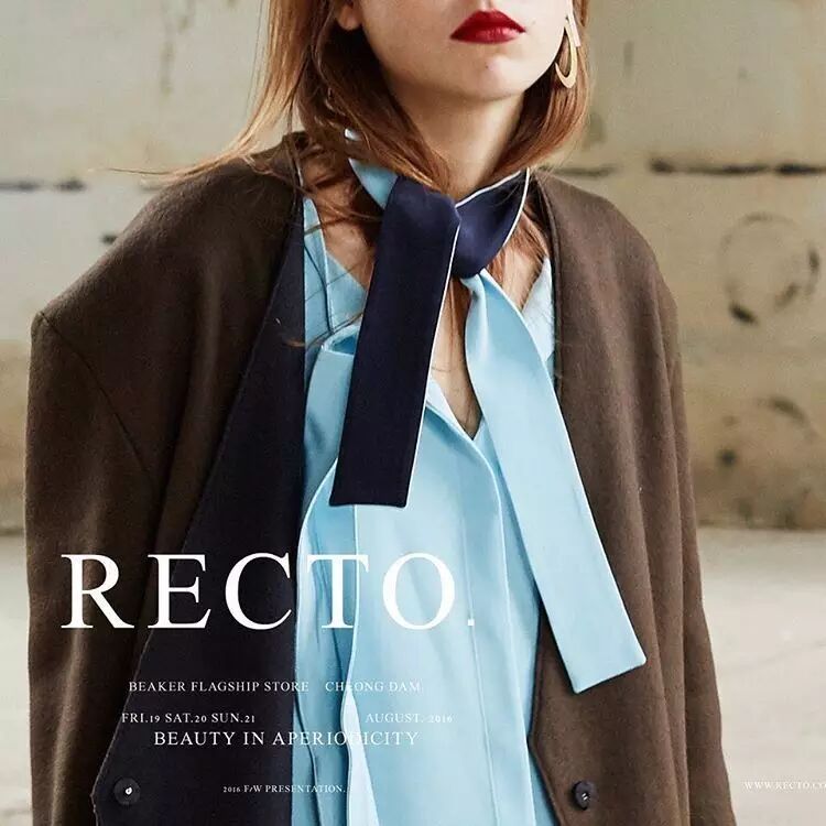最近一两年,RECTO.也成为了一线韩流明星的最爱,郑秀晶、高俊熙、孔孝真等人气欧尼就曾穿着RECTO. 的设计上过杂志,女明星带动的曝光率让RECTO. 迅速蹿上天。