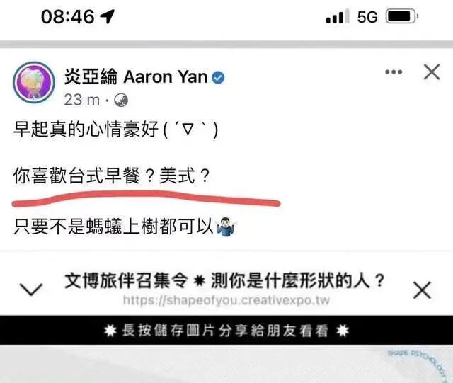 炎亚纶开头就说自己早上起来心情就超级好,然后问大家喜欢台式早餐还是美式早餐。