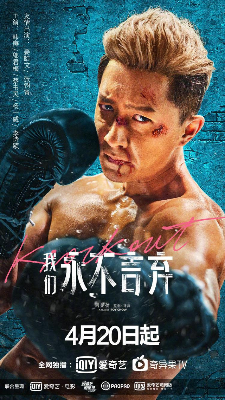 这部影片就是由周显扬执导,韩庚、邬君梅、蔡书灵、姜皓文、张钧甯等出演的剧情动作片《我们永不言弃》,讲述韩庚饰演一名落魄的昔日拳王,将为实现女儿的愿望再度站上擂台,试图重返巅峰的故事。影片官宣4月20日(下周一)上午10点正式上线。