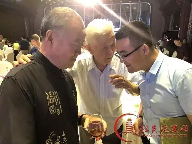 申毅将军、老兵方队组委会副秘书长孙惠军与红色延安网总编常世民在活动现场交流(王力 摄)