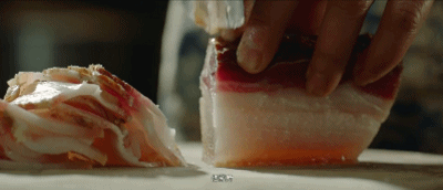 香料的分量、比例、涂抹的力道,赵婆婆有六十年的经验。只有最幸运的猪肉,才能得到她亲手调教,并最终腾云驾雾成为一块成仙的腊肉。