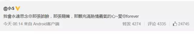 随后,小S也发布称:“我会永远思念你那张帅脸,那颗充满热情义气的心~爱你forever”。