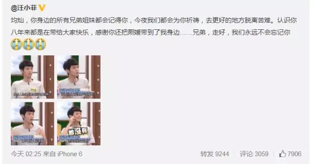昨日凌晨两点半左右,汪小菲在微博上传安钧璨上《康熙》的照片,写着“兄弟,走好,我们永远不会忘记。”