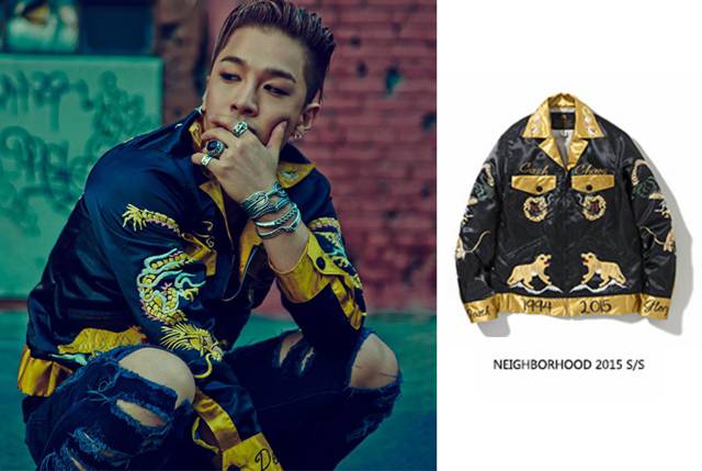 其实这件布满东瀛刺绣的浮夸外套,也是来自日本的横须贺夹克喽!炫酷的GD志龙欧巴穿起来真的是好帅好帅!!